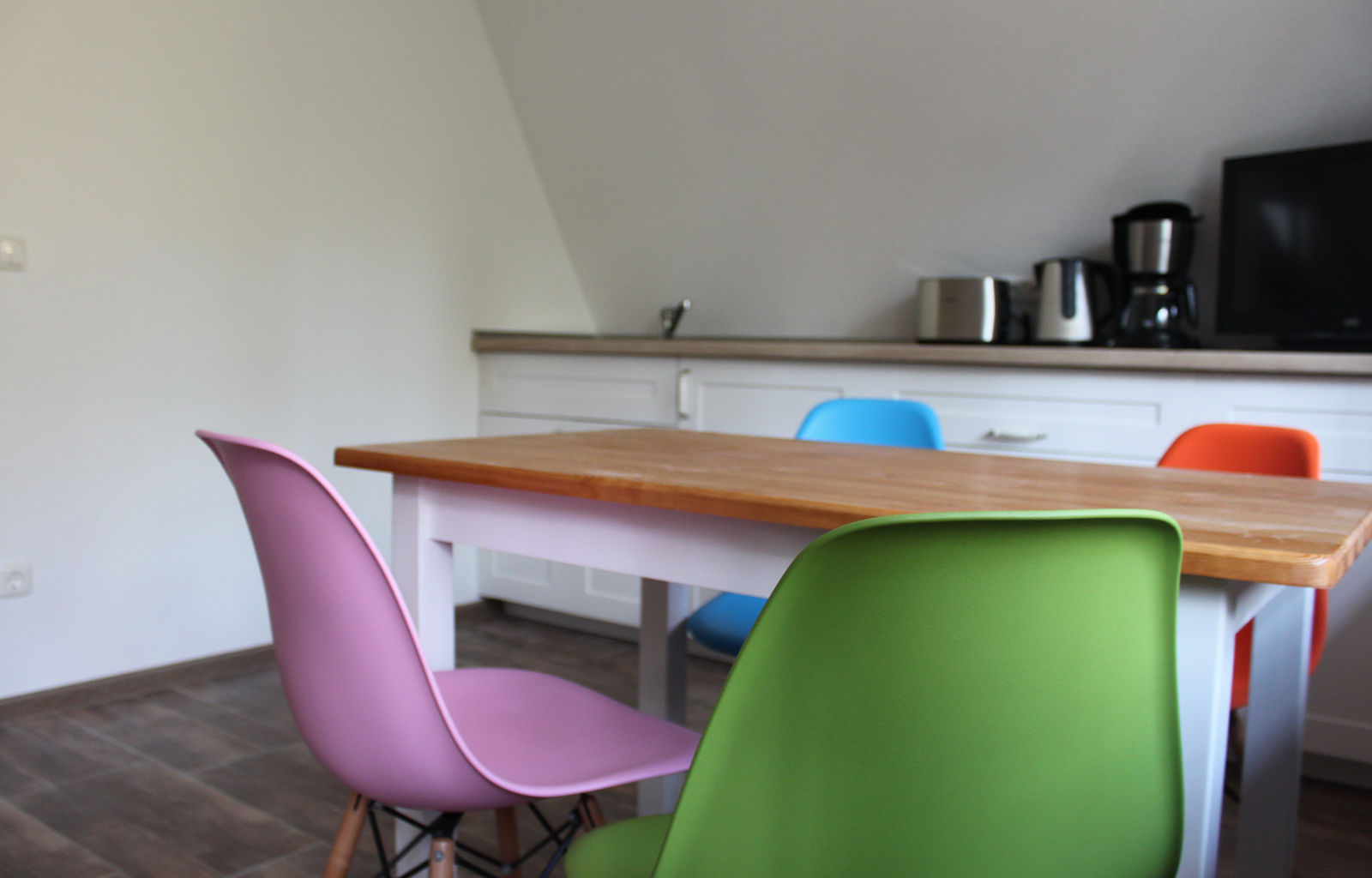 Und was Sie noch in Ihrer Finnhütte erwartet: Eine Küchenzeile mit Kühlschrank, Spüle, 2 mobilen Kochfeldern, Wasserkocher, Kaffeemaschine, Toaster und diverse Einzelteile, die Sie täglich brauchen. Wen einmal Messer, Gabel, Schere nicht genügend zur Verfügung stehen sollten, wenden sie sich bitte an unsere Verwaltung.